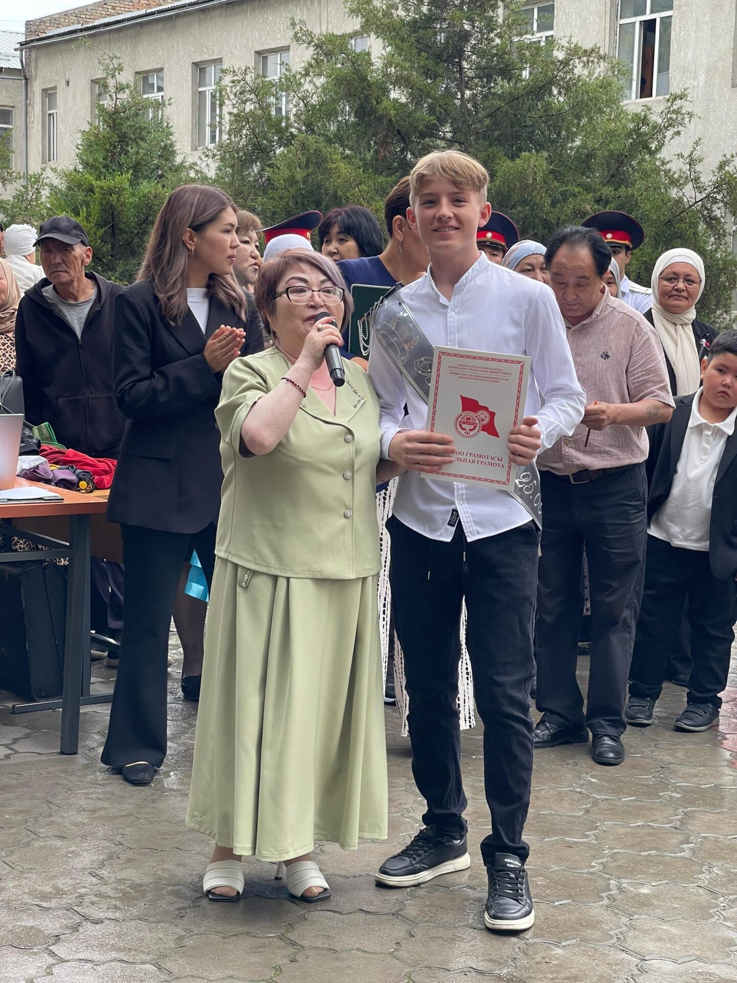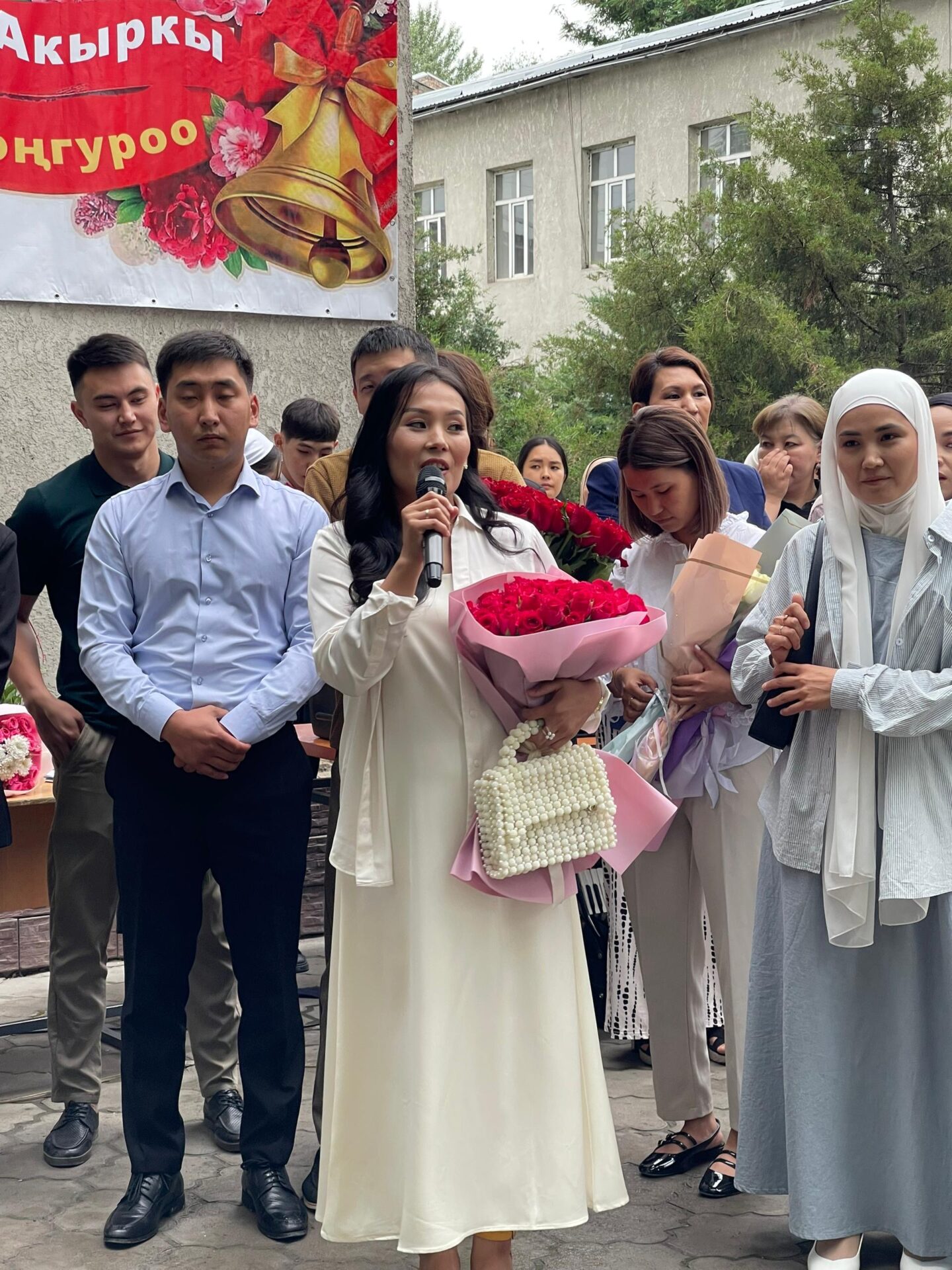 Мектеп директору Асекова Гулмира Асанкуловна бүтүрүүчүлөргө кайрылып, аларга билимге умтулуу, жоопкерчилик жана адамгерчилик принциптерин сактоо менен келечекте ийгиликтүү инсан болууну каалады.