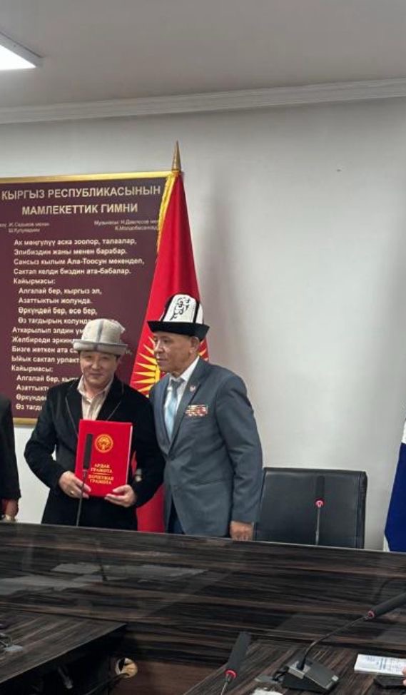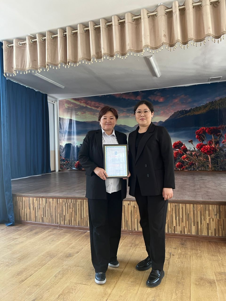 Свердлов районунун Ардагерлер кеңешинин Ардак грамотасы мектебибиздин уюштуруу иштеринин завучу Жээнтаев Кылыч Мамбетович сыйланды.